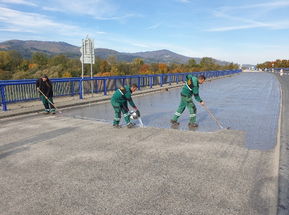 Řeč je o epoxidových, kotevně impregnačních nátěrech a pečetících vrstvách, které se používají jako součást hydroizolace betonových mostních konstrukcí a zajišťují zde dokonalou adhezi mezi betonovou mostní konstrukcí (mostovkou) a hydroizolačním pásem.